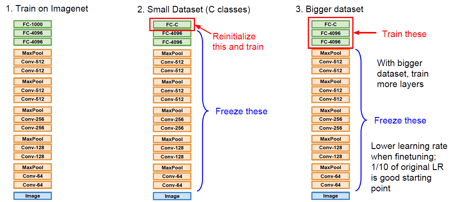 DataSet이 조금 클 경우, 좀 더 많은 layer들을 train 시킨다.